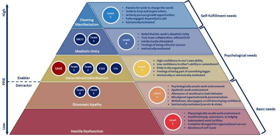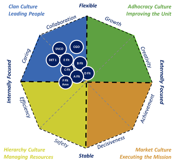 Our 2-day workshop enables organizations to develop and shape their operational and cultural objectives together, using our six cultural leverage points with representation from across the entire organization and each rank tier. Certified military members are eligible for the Organizational Strategy and Culture Advisor special experience identifier (9IC / SC – October 2023).