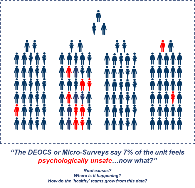 We cultivate organizational cultures through systems thinking so people can thrive. Unlike the DEOCS, our work captures the context behind cultural attributes, getting into the why.